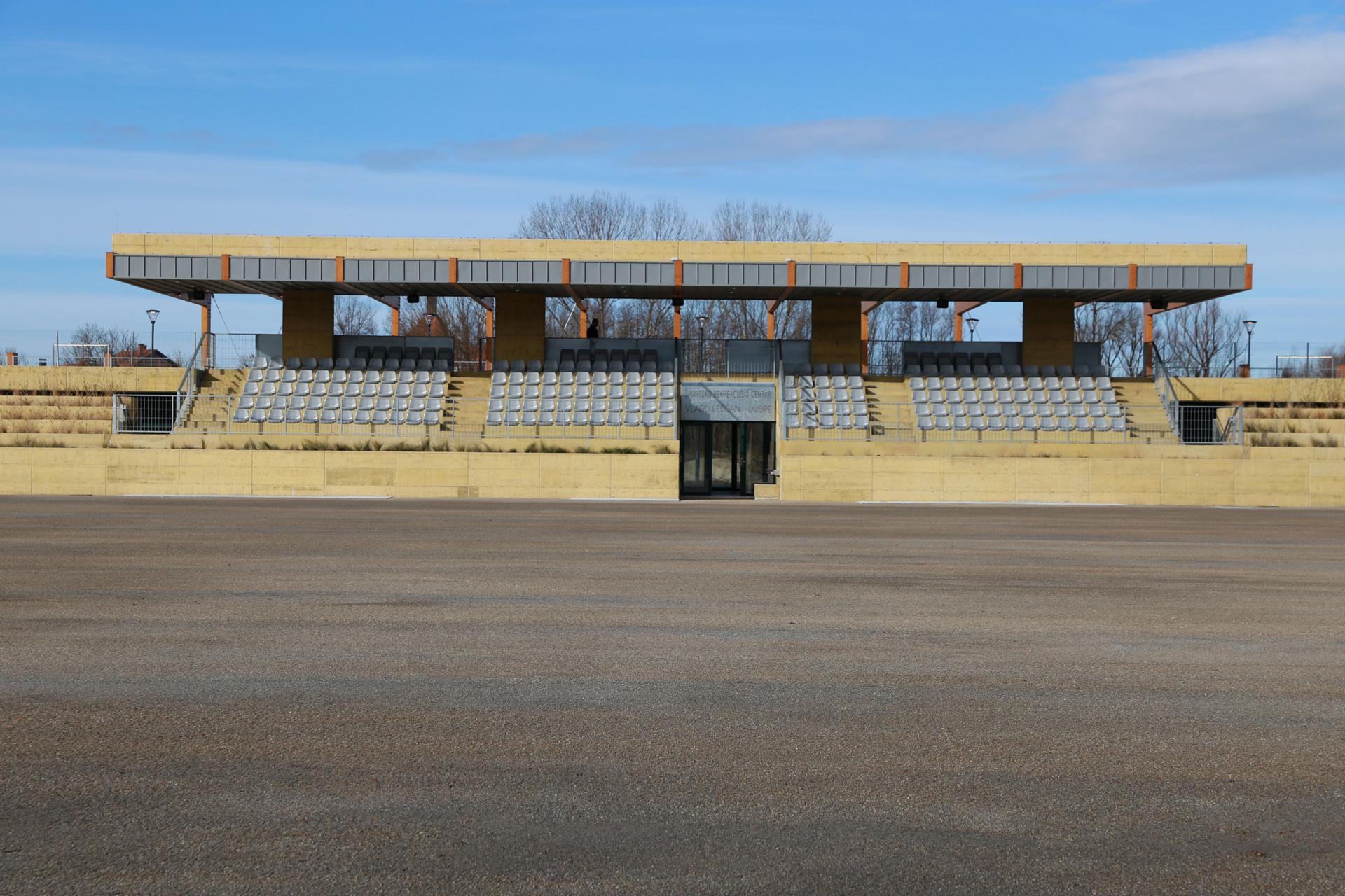 The Sports and Recreation Centre Đurđevac is located next to the Old Town of Đurđevac and park forest Borik. The concept design of the centre included a wide range of sports and recreational facilities. The first phase of construction works with the football stadium building has been completed this fall. Along with the cascade form of the building, the main design element is the exposed concrete in yellow colour inspired by a nearby geographic-botanical reserve "Đurđevečki peski".