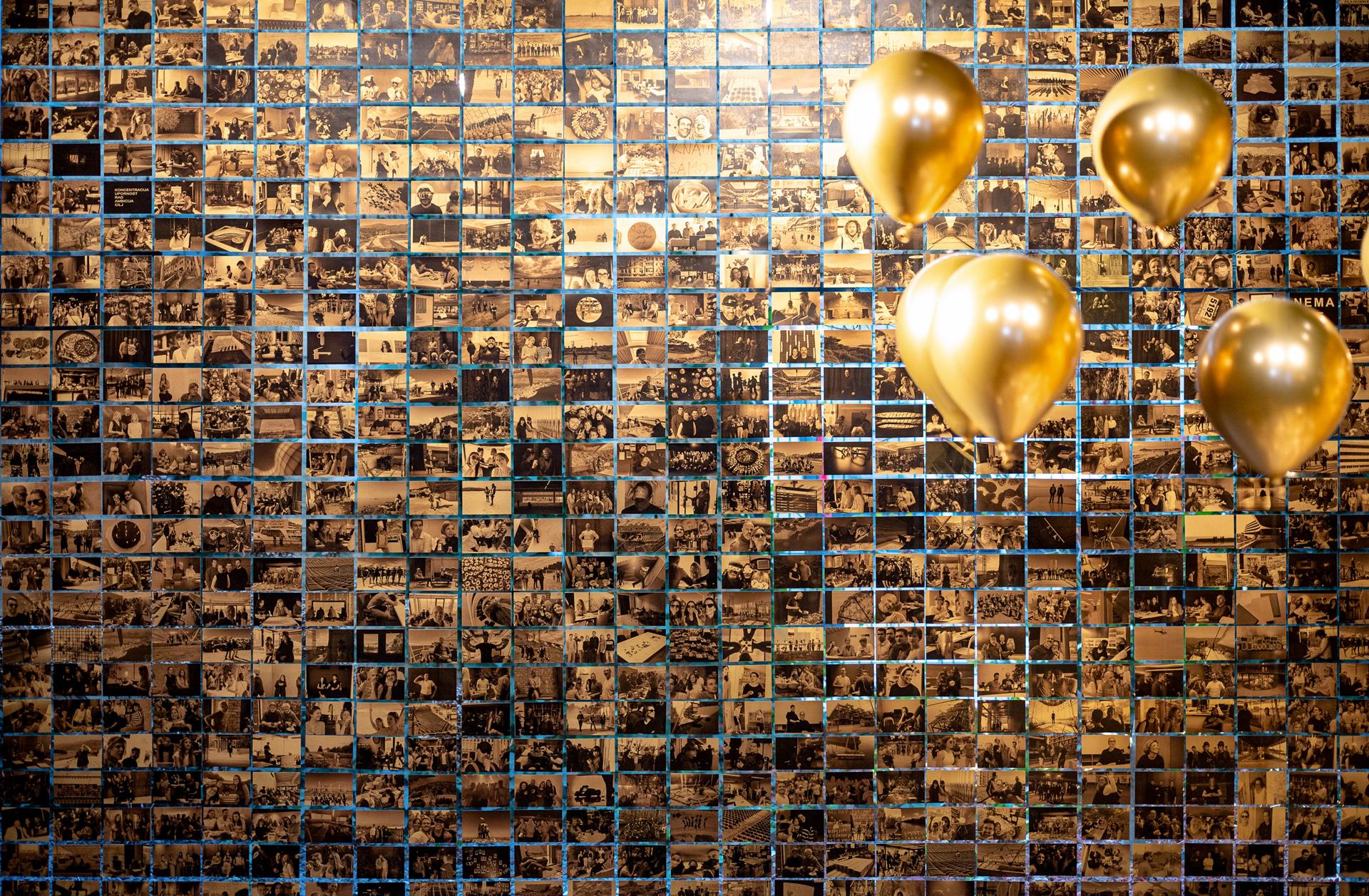 Za ovu obljetnicu svaki je zaposlenik odabrao fotografije koje za njega najbolje predstavljaju duh 3LHD-a. Fotografije su posložene u pravilnom rasteru, bez hijerarhije, i poput svega u ovoj sobi, dobile su slavljeničku zlatnu notu.